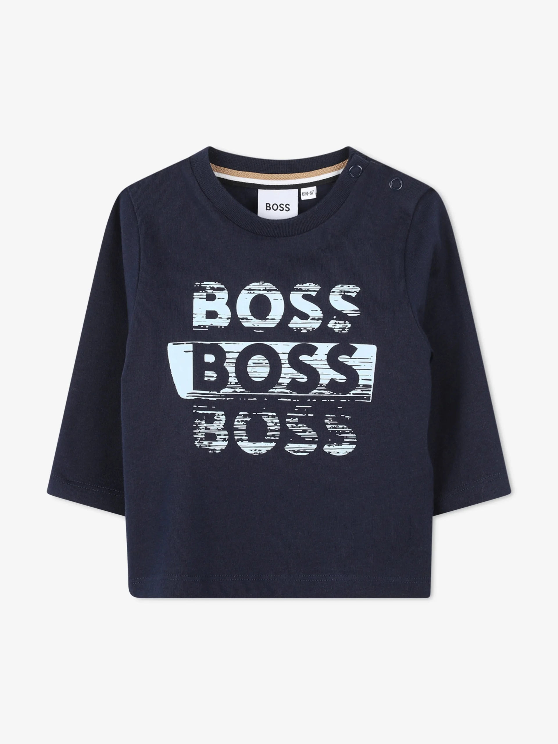 Baby Boys Long Sleeve Logo T-Shirt in Navy