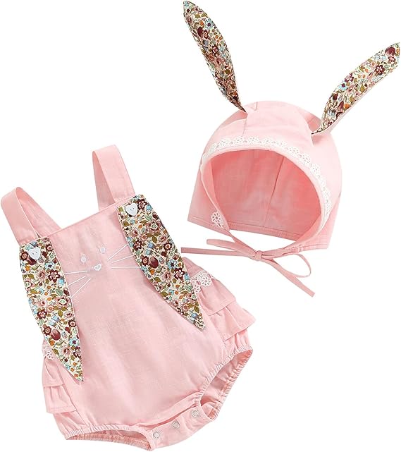 Loalirando Baby Girls Easter Outfits Cute Floral Rabbit Ear Bunny Tail Newborn Baby Girls Romper + Hat/Easter Baby Girl Dress Sister Mathing Clothes