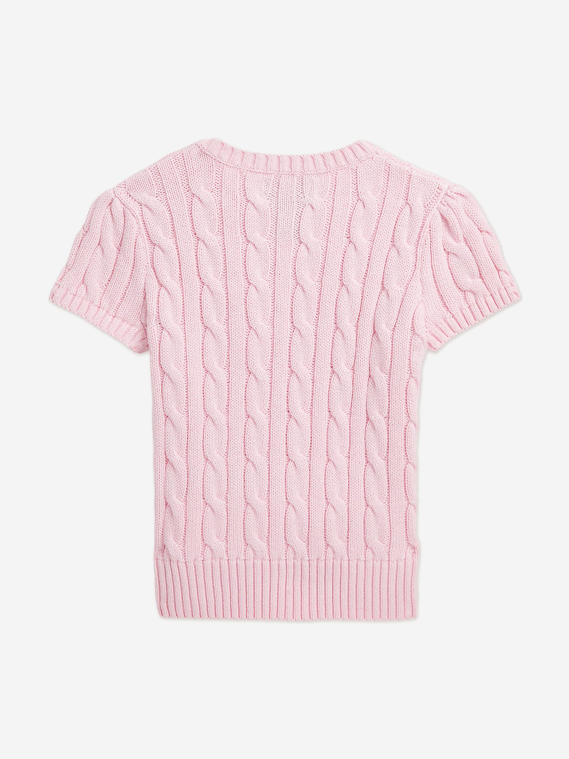 Girls Cable Knit Pullover in Pink