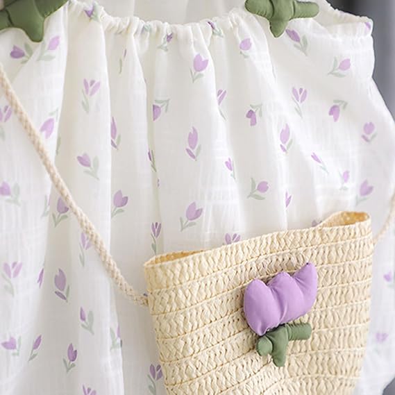Toddler Baby Girl Summer Tulip Princess Dress, Sleeveless Floral Print Puffy Suspenders Dresses with Elasticized Neck + Tulip Bag for Beach Birthday Shooting 1-7 Years, Purple